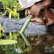 There are a number of portable water filters on the market, and honestly, all about equally as good. The particular filter has a number of add ons, including a small compass, small mirror, and the end cap is a whistle. Cute, but to me, probably not that all useful. A well-built carabiner allows it to be attached easily on the outside of your gear if you want. But it DOES have a couple features that I consider very useful. If you look at the picture above of the woman drinking, notice how close down to the water she has to get. This filter comes with a length of surgical tubing which will fit on the end to allow you more stand-off from the water. This allows you to keep your head up higher and to be able to look around while drinking, enhancing your security. The tubing could also be used as an emergency tourniquet.