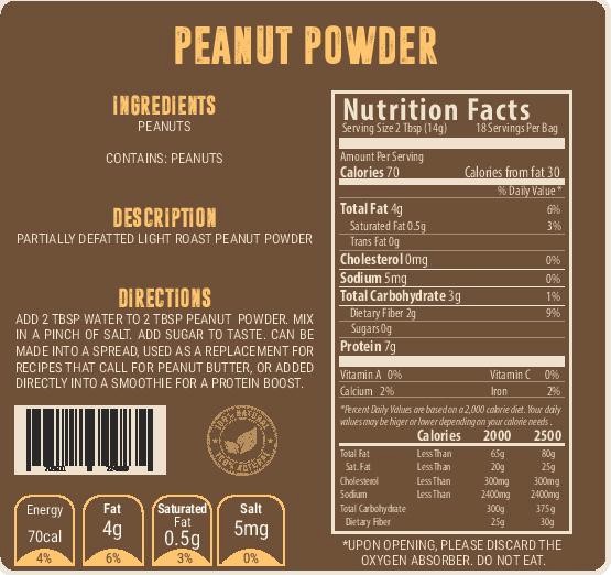 Peanut powder is made by compressing peanuts to remove the oil and fats, and then grinding them into powder. This provides a lightweight substitute for the much heavier actual peanut butter. So how does it stack up against the real thing on the two issues I see as most important: Nutrition and taste.