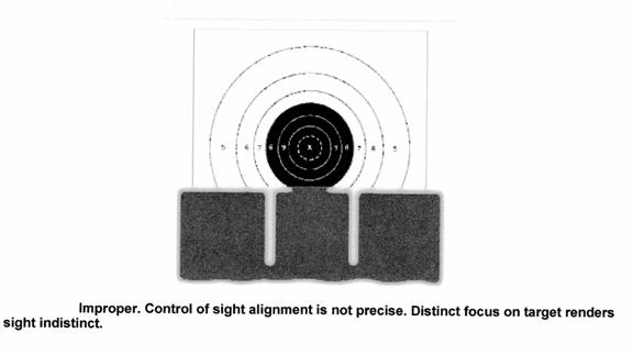 Now we are getting somewhere. By keeping your focus on the front sight, you accomplish not only proper sight alignment, but you can also maintain a proper sight picture.