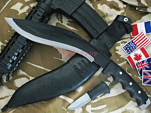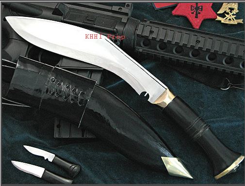 I was truly honored by my Gurkhas when they presented me a beautiful half sized honor Kukri in a red felt scabbard trimmed in German silver. This was a real honor as these loyal professional soldiers do not give these away unless they have absolute respect for you. I then decided that I wanted a full sized military issue Kukri for my kit. These are hand made in Nepal and the one pictured is the official military Kukri I bought from Kukri House in Nepal. Their website is http://www.khukurihouseonline.com/ and the picture on the left is from their website.