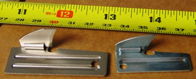 Sometimes it is the simple things that matter. I wonder how many folks are storing canned goods in their preps and forgetting that they usually rely on an electric can opener which will be unavailable in SHTF or Grid Down situations. But there is one simple, effective,cheap and highly versatile can opener available. I am talking about the eternal P-38 military can opener. The G.I’s friend for many years. Developed in 1942 for the military K and C rations, it was standard field ration issue until the 1980’s when the MRE (Meal Ready to Eat) came on board. No one knows exactly where the name P-38 came from, but the consensus is that it takes approximately 38 twists around a C ration can to open it. In the Marine Corps, it was often referred to as the “John Wayne”. The P-38 was joined later by a larger brother, the P-51. You can see the size difference in the picture below.